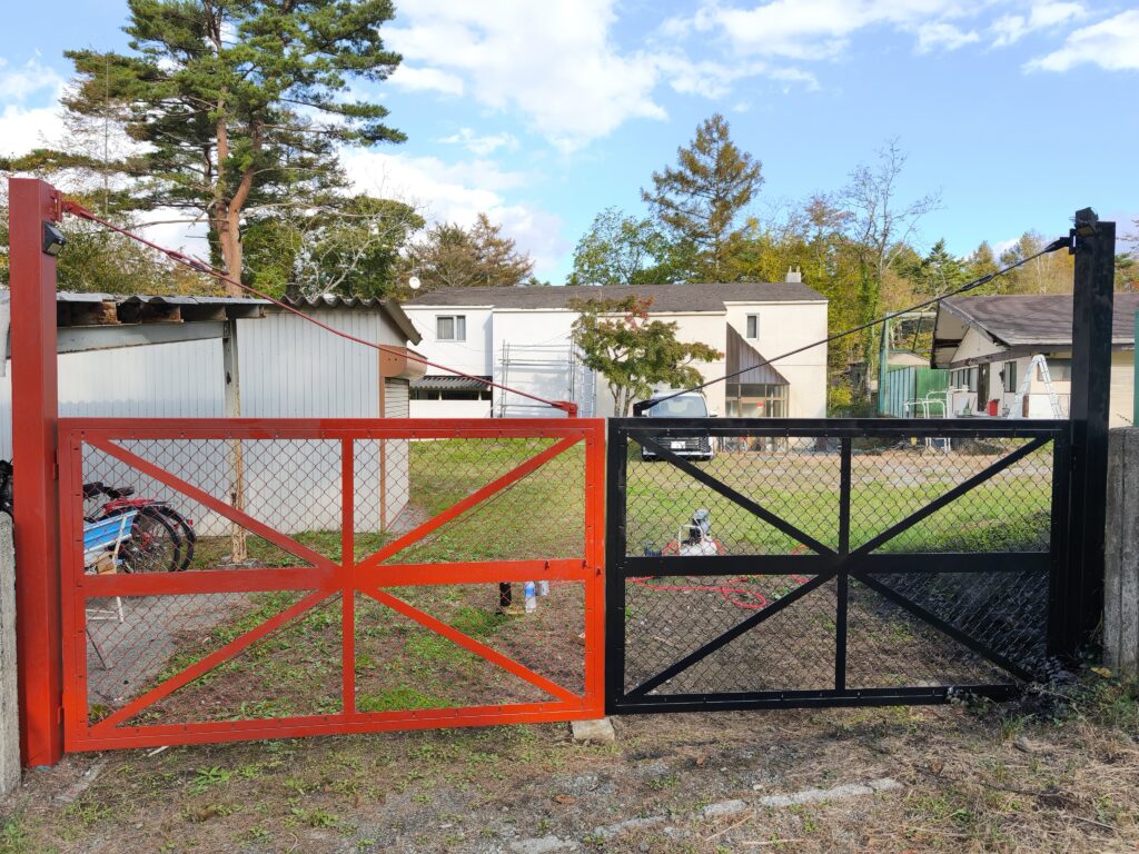 門扉ペンキ塗り替え 施設 X Facebook はてブ LINE Pinterest コピー 2025.11.02 門扉のペンキ塗りを行いました。防錆ペンキ(赤錆色)を刷毛で下塗りした後、水性ペンキの黒色(N-10)をスプレー塗装しました。 左側の扉は防錆ペンキを塗った後です。